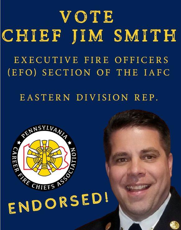 | PACFCA unanimously endorses our very own, Fire Chief Jim Smith for the EFO Section of the IAFC - International Association of Fire Chiefs